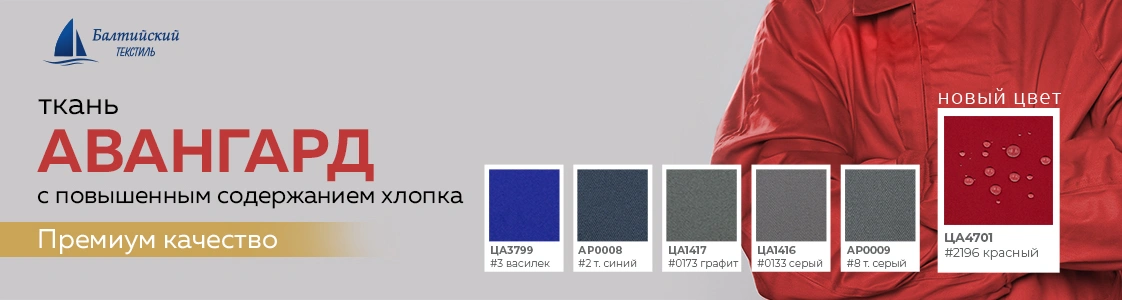 Смесовая ткань для рабочей одежды «Авангард» доступна к заказу в интернет-магазине компании «Балтийский текстиль». Ткань можно купить как оптом, так и в розницу на отрез от 1 метра, а также заказать образцы ткани во всех доступных к заказу цветах.